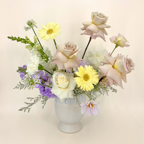 Exact colours and floral availability changes week to week for any of our given palette options. Please note that your arrangement will not be identical to what is pictured - every single piece is unique! Please leave any floral requests in the Special Instructions box at checkout and we will always do our best to follow them, if we can. If no notes are provided our florist will create something beautiful and in-season.