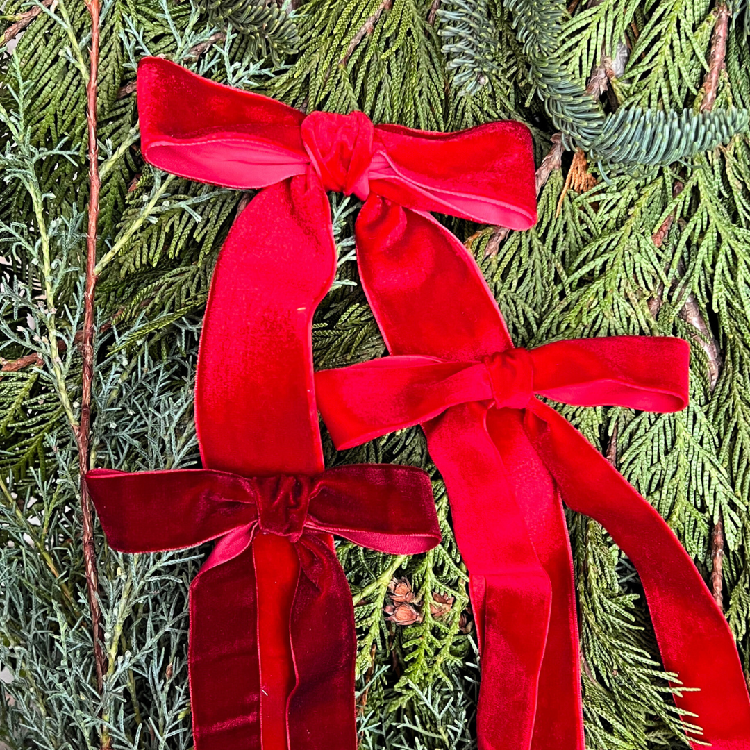 Over-the-top and colourful, just like Buddy the Elf himself! This small fresh wreath measures approximately 14" with fresh mixed greens on a grapevine wreath base. The focal points of this wreath are the stunning velvet ribbons, sure to brighten up your space!