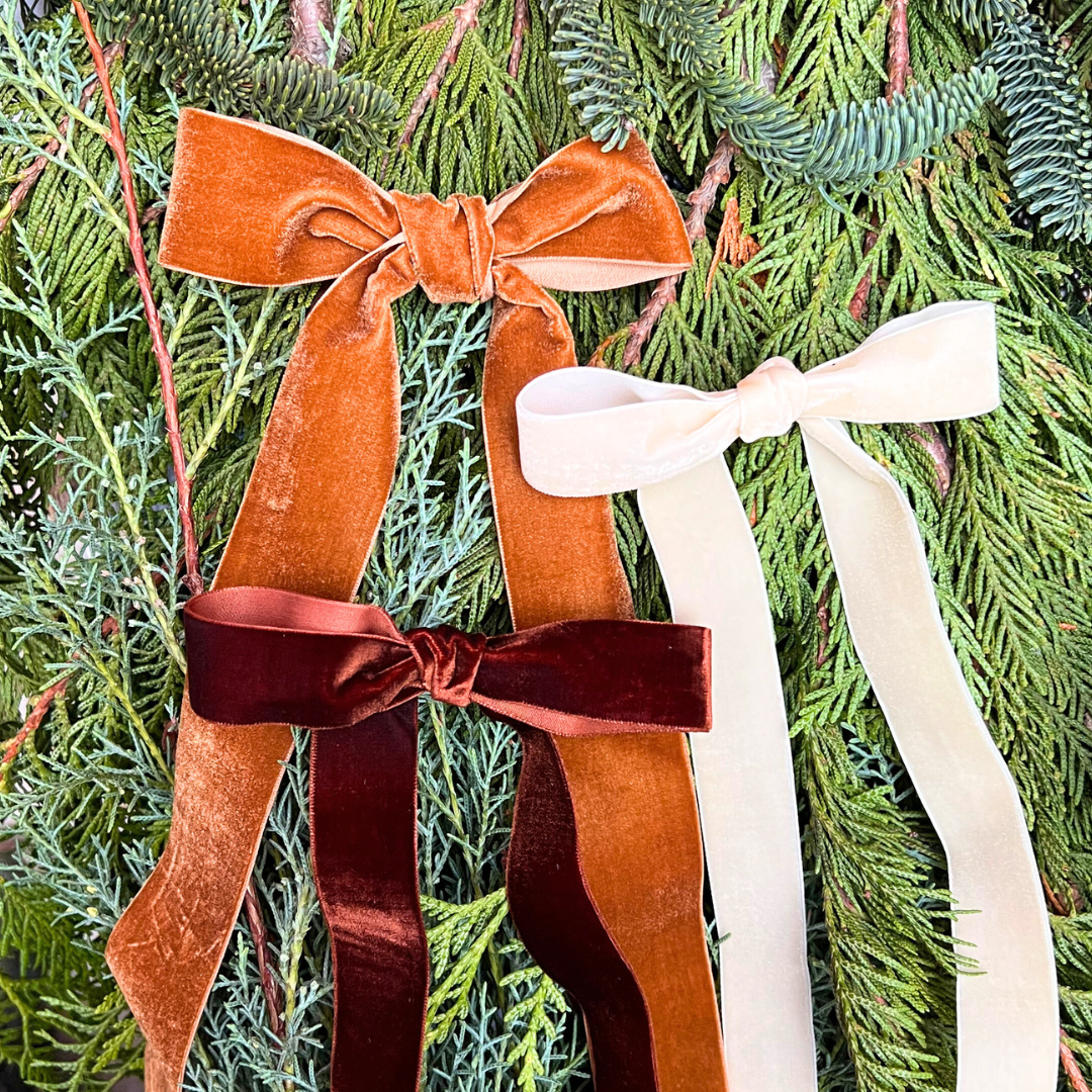 Please select the number of ribbons you would like (three or five), as well as the colour. Please see the pictures included for ribbon colours - each wreath will be made monochromatically, rather than multiple different colours of ribbon.