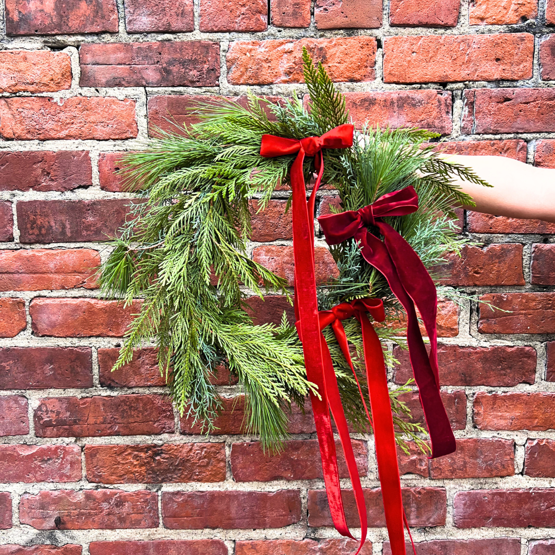 Please note that fresh wreaths are made to order and variations from the photo may occur. Fresh wreaths should last approximately 2-3 months outdoors, but if displaying inside may start to dry out and will not last quite as long. Dried wreaths can still be beautifully displayed!