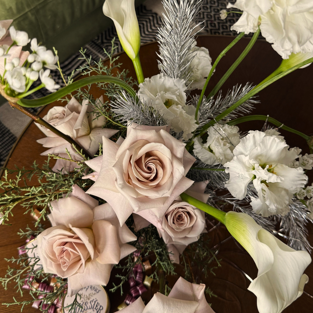 This absolutely stunning (if we do say so ourselves) neutral arrangement is perfect for any event during your holiday season! Like a bottle of the finest champagne France has to offer, these flowers are elegant, luxurious and effervescent. Treat yourself, or your favourite host, to a sparkling celebration with this beautiful arrangement!