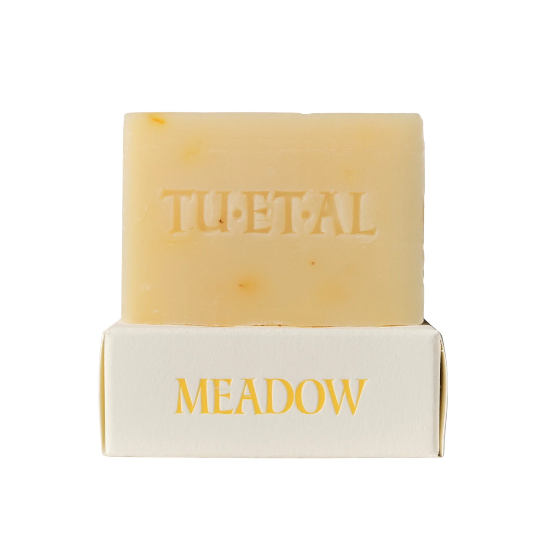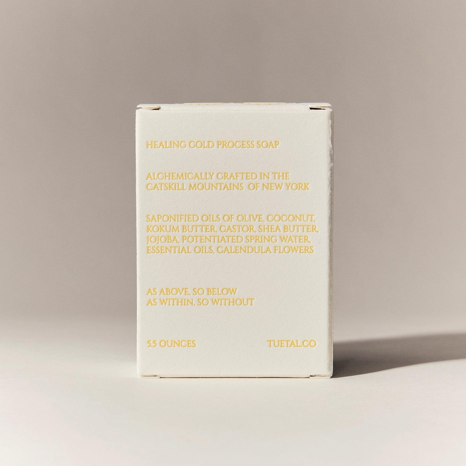 If you’ve had the pleasure of walking through a forest and ahead is an opening brimming with wild flowers and sunshine, you have experienced Meadow. Meadow captures the moment you step from the quiet forest into a sunlit field, wildflowers swaying in the breeze, with breath returning fully to your body. It holds the feeling of expansion after a deep healing experience. This bar is an invitation into that feeling of warmth and renewal; a celebration of healing, spaciousness, and inner light. Unique to this soap is the healing sunshine power from the calendula flower, although, we cannot forget the relaxed balanced mind and body that has overcome you from the oils of holy frankincense, clary sage, and cedar to bless the temple of your body. Infused with calendula lovingly grown in the maker's garden, Meadow honors the radiant power of the sun and the body’s innate wisdom to bloom.