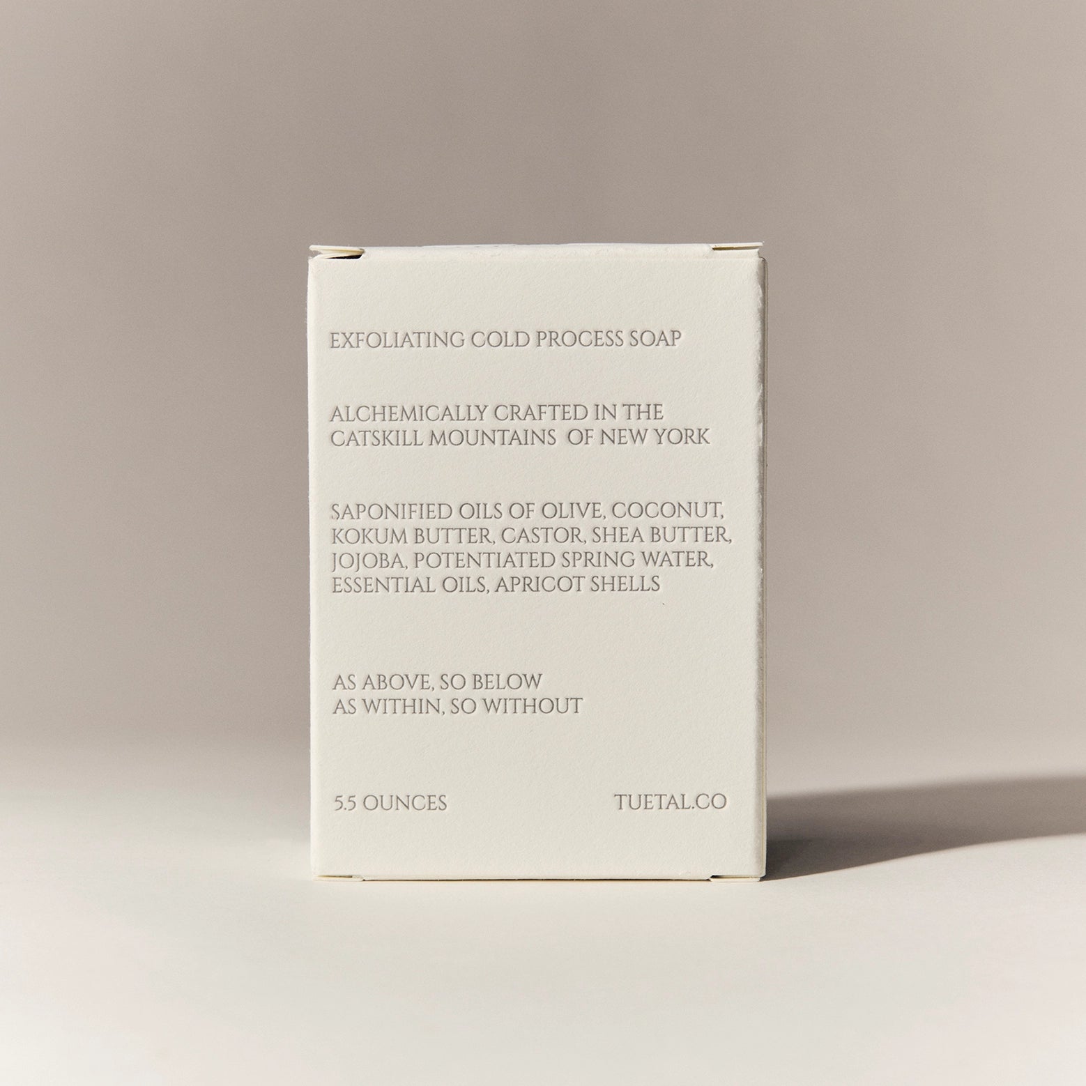 Meteor Shower is an awakening in motion, inspired by the fleeting brilliance of light streaking across a night sky. A flash of the spectacular, this soap condenses the sense of wonder and refreshment. Infused with potentiated spring water charged beneath meteor showers, it carries the subtle energy of the cosmos and invites transformation with every use. A vibrant blend of essential oils invigorates the senses and clears the mind, bringing together elements of brightness, depth, and renewal. Eucalyptus on the front opens your breath to usher in the expanse of the universe. Patchouli and camphor ground into the earth ignited by hints of blood orange and black pepper. Finely ground apricot shells gently exfoliate, leaving skin smooth and revitalized. Let Meteor Shower reflect the spark within you, clear and radiant, a reminder of the light you hold.