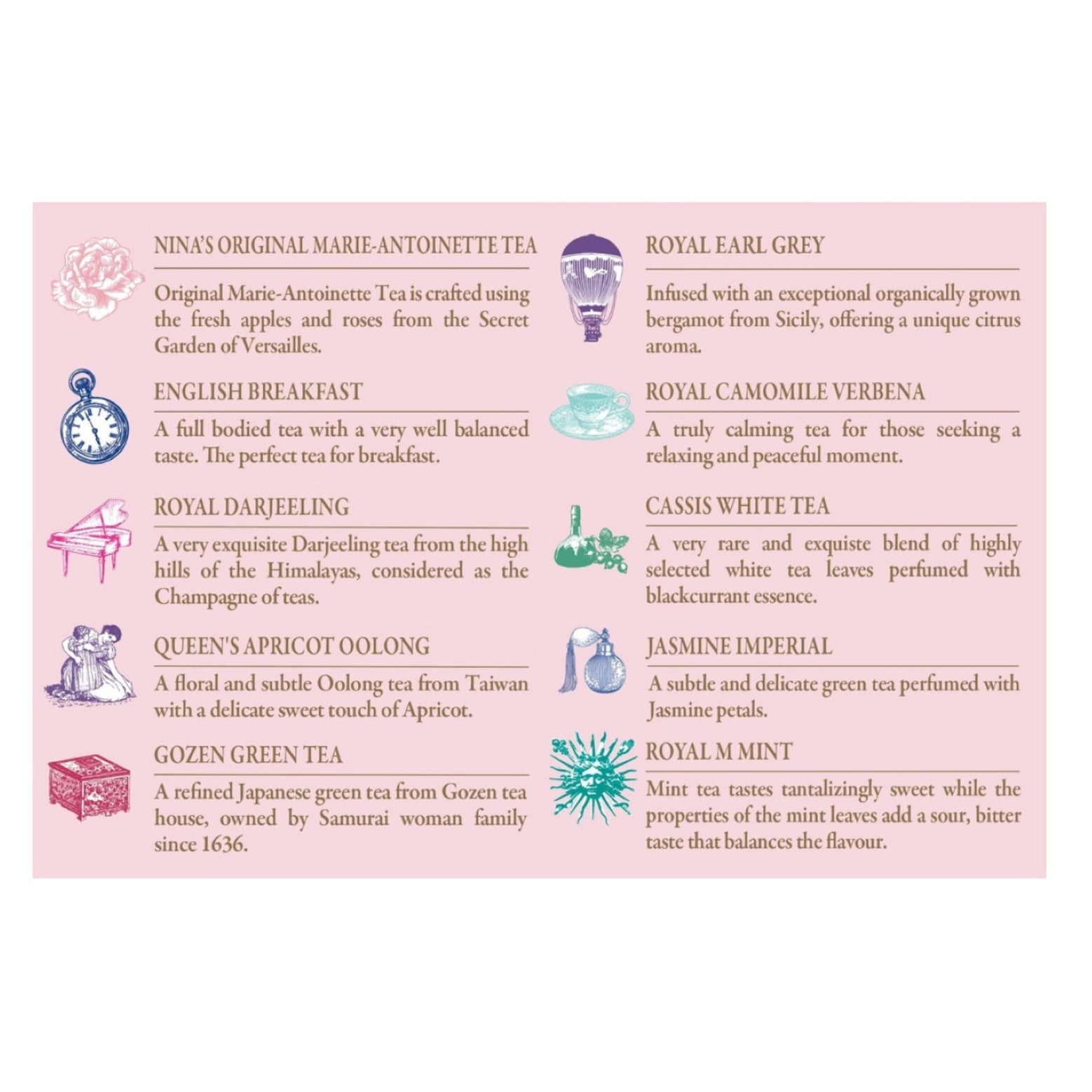 The Nina's tea house was born in the 17th century under Pierre Diaz. Passionate about botany, he founded Distillerie Frères to produce rare perfumes and precious essential oils. Today Nina's preserves this heritage and perpetuates this know-how allowing them to develop and formulate their essences themselves, which are 100% natural.