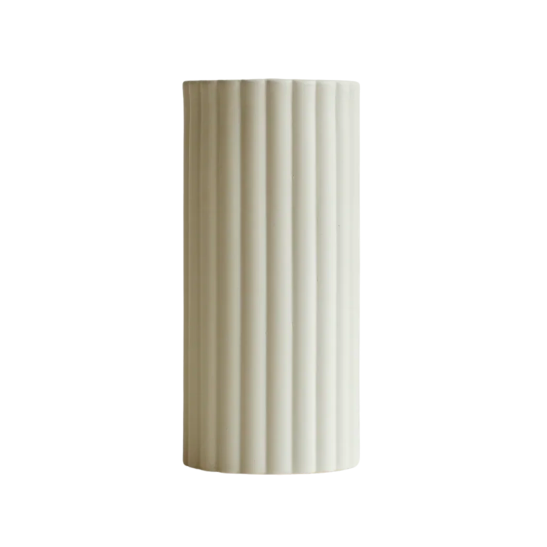 This beige ceramic cylindrical vase with a smooth finish is made to showcase your elegant blooms in style!