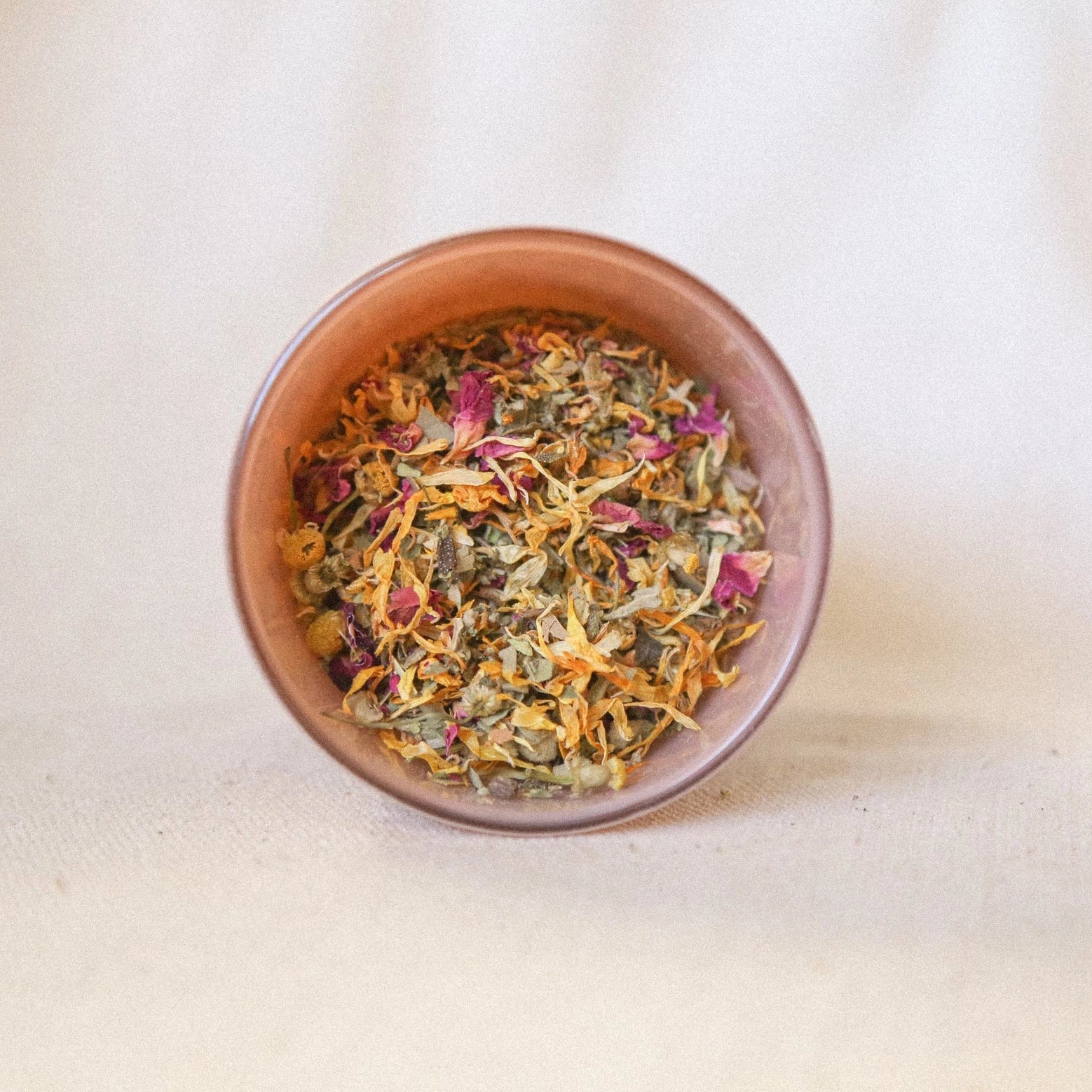Contains: 1 Compostable bag with Rose Petals, Eucalyptus leaf, c/s Comfrey leaf, c/s Marshmallow leaf, c/s Chamomile, Marigold Petals( Calendula Officinalis)